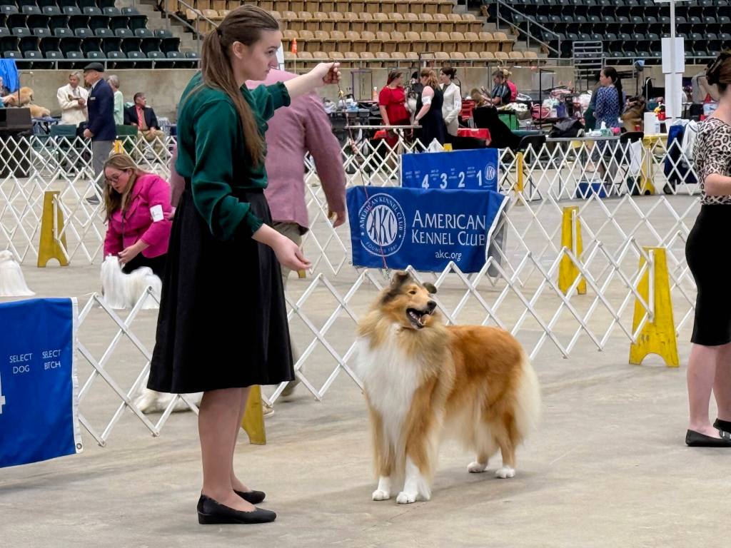 We’re absolutely thrilled for her—she’s received high praise from some incredibly respected breeder-judges, and we’re so proud to see her mature and remember all the dogs behind her.