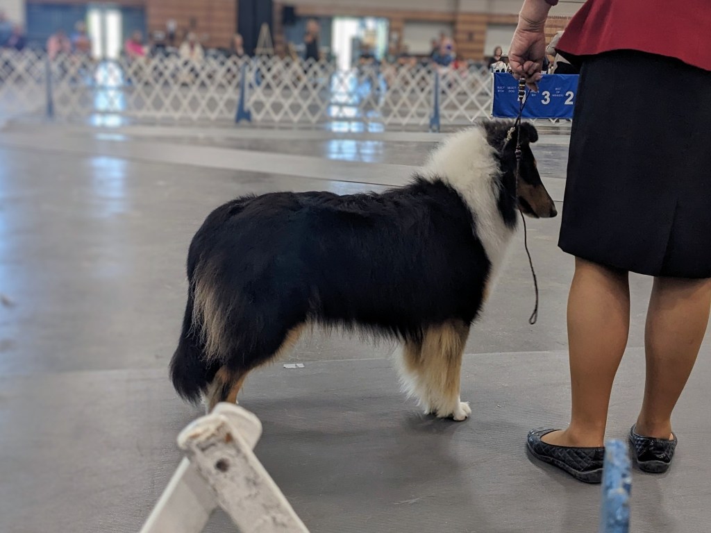 We got to see Brew for the first time in a few months since he headed off to grow up with Killyleagh Collies, and we love how this big young dog is coming along! It was just his second show, and he held his own—even if he’s a bit of a moose learning to stay focused around GIRLS. He picked up both majors, going BOW from the BBE class.