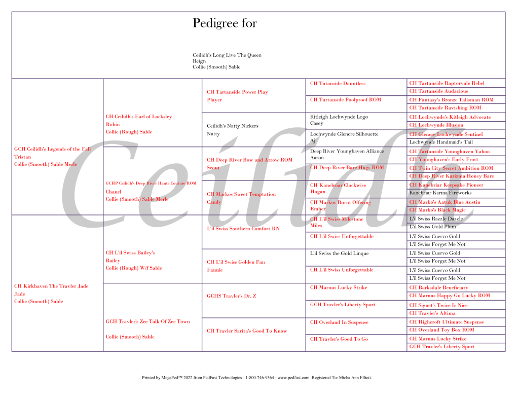CH Ceilidh’s Dawn’s Early Light × CH Ceilidh’s Long Live The Queen
