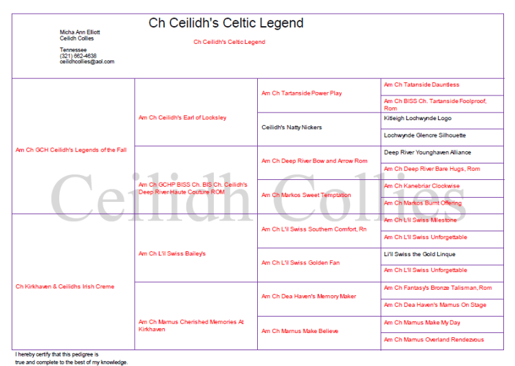 GCH Ceilidh’s Legends Of The Fall ROM × CH Kirkhaven N’ Ceilidh’s Irish Creme