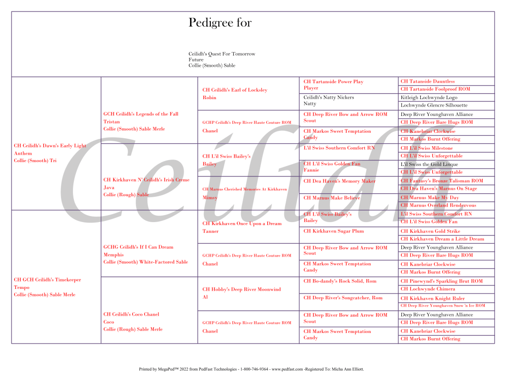 CH Ceilidh’s Dawn’s Early Light × GCHB Ceilidh’s Timekeeper