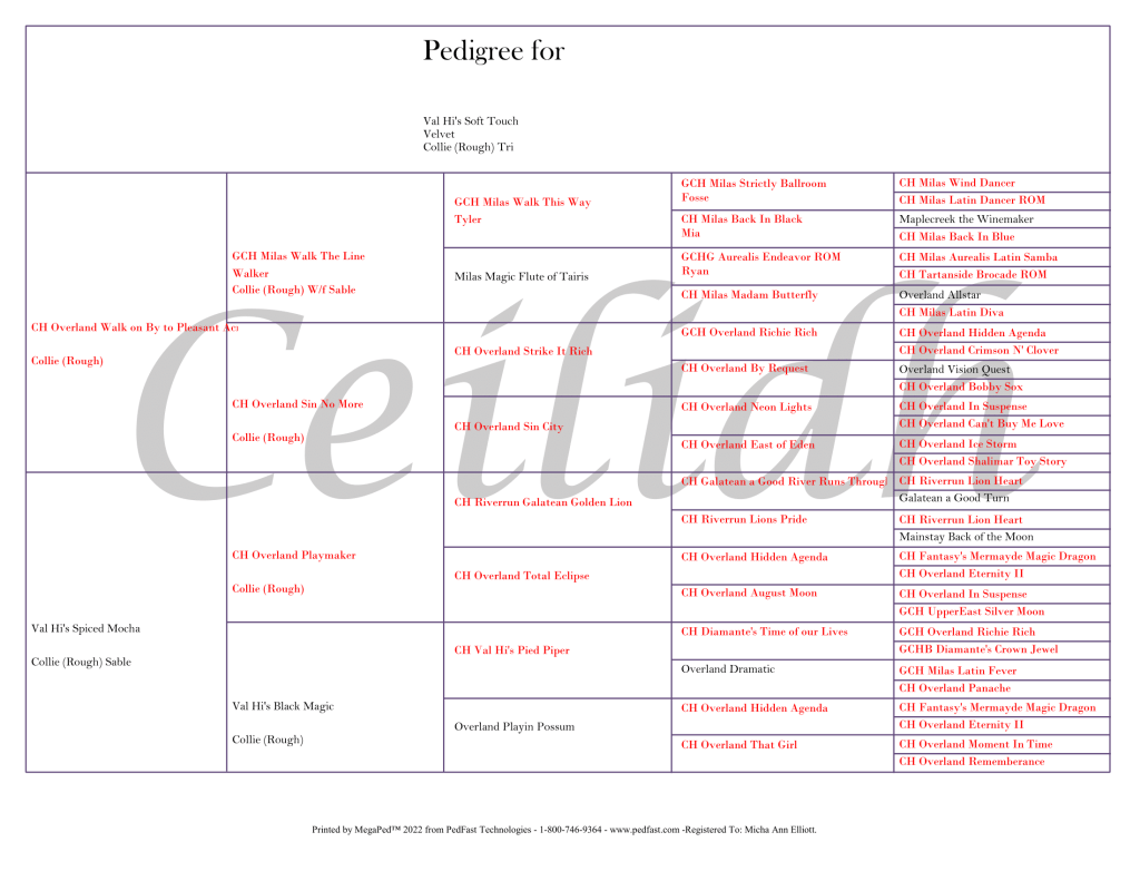 CH Overland Walk on By to Pleasant Acre × Val Hi’s Spiced Mocha